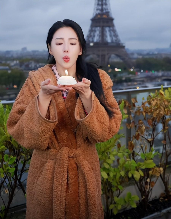 第一个视频是她拍的一个变装,看背景她住的酒店是在埃菲尔铁塔的对面,景色是真的好。